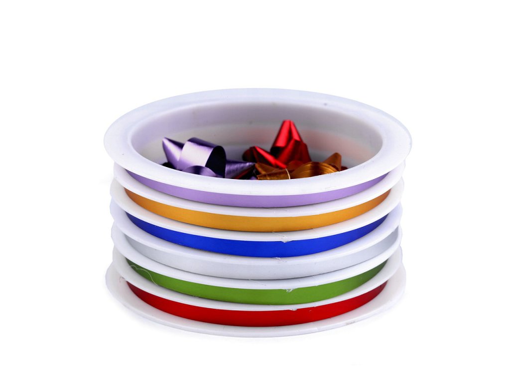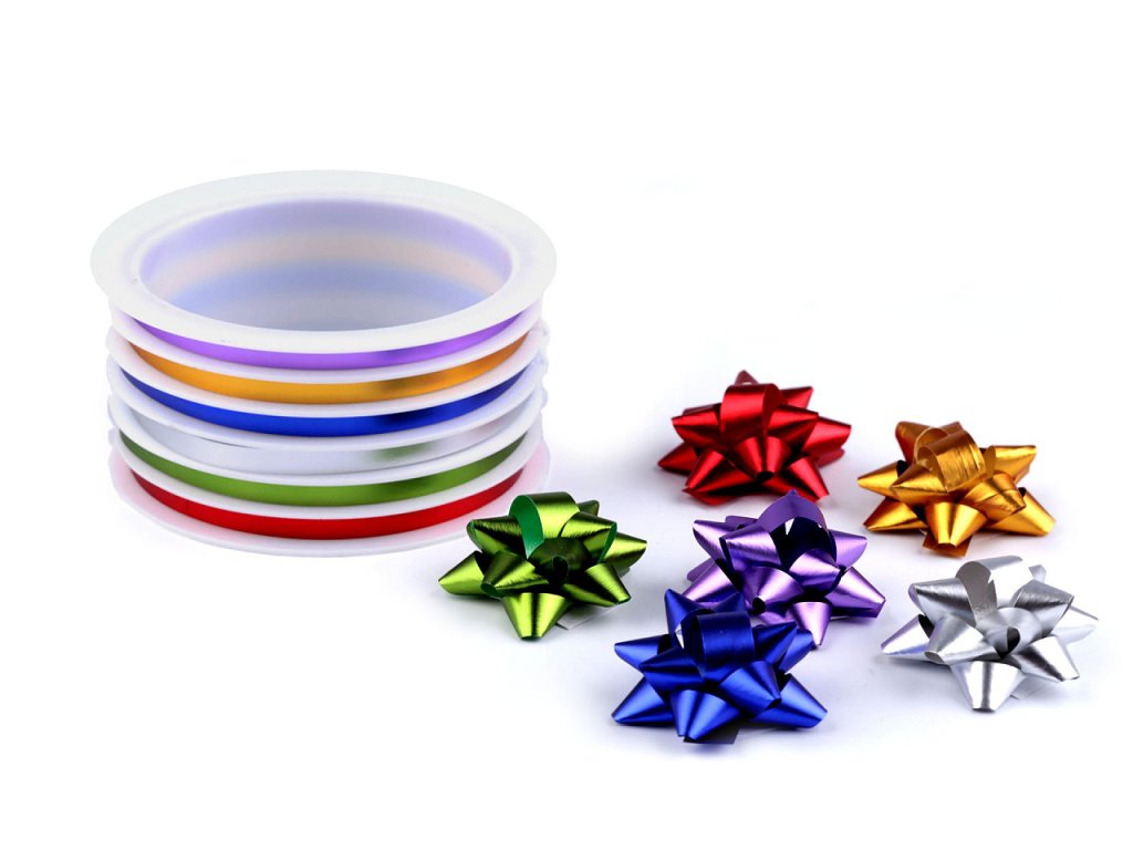 Balicí sadu složenou z foliových stuh a samolepicích rozetek využijete celoročně na ozdobné balení dárků, výrobu přáníček, dekorací i k aranžérským účelům.