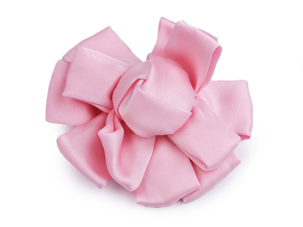 Výprodej - Saténový květ k našití a nalepení Ø6,5 cm - růžová sv.