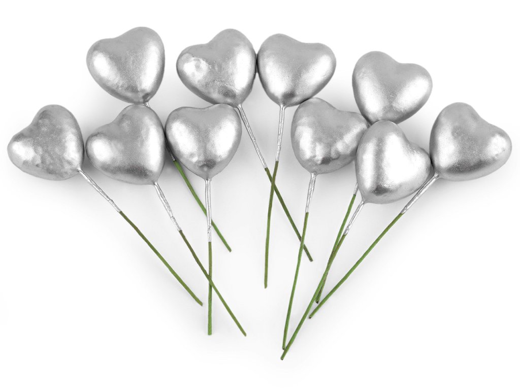Výprodej - Srdce na drátku - stříbrná, 10ks