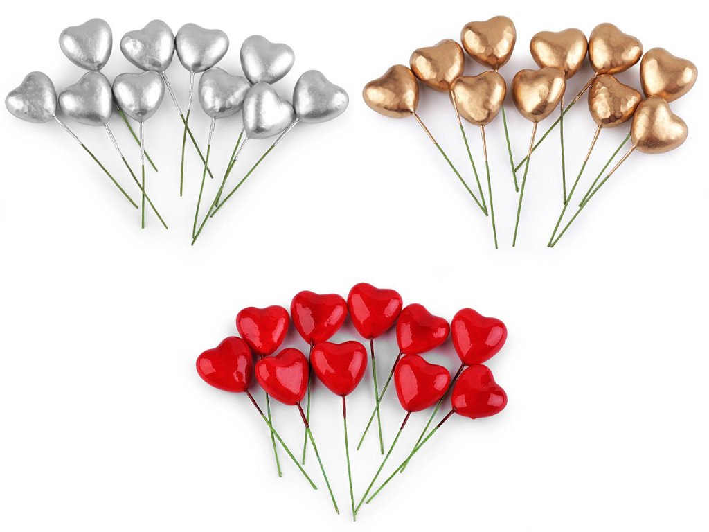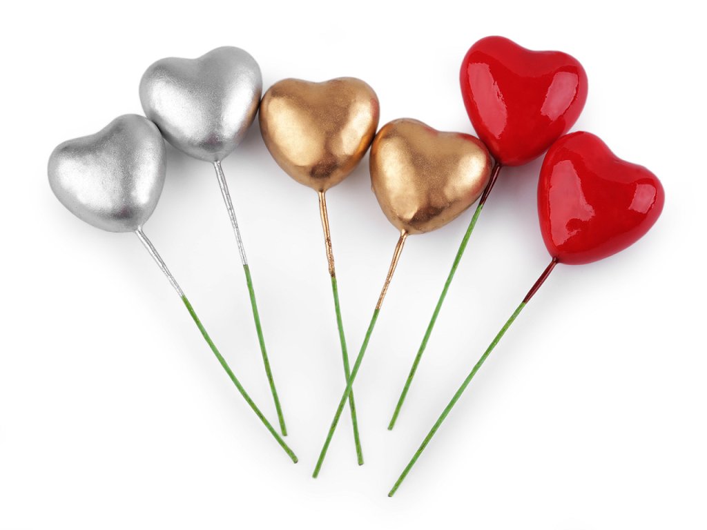 Dekorační srdíčka jsou připevněná k ohebnému floristickému drátku.