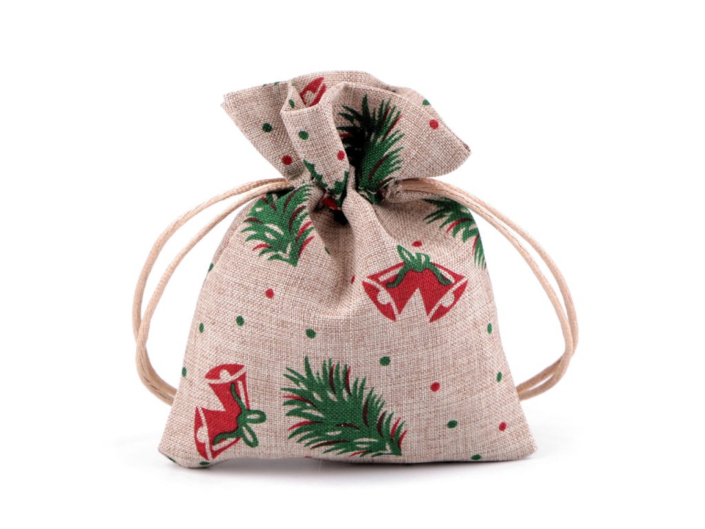 Výprodej - Vánoční dárkový pytlík 10x13 cm imitace juty - režná