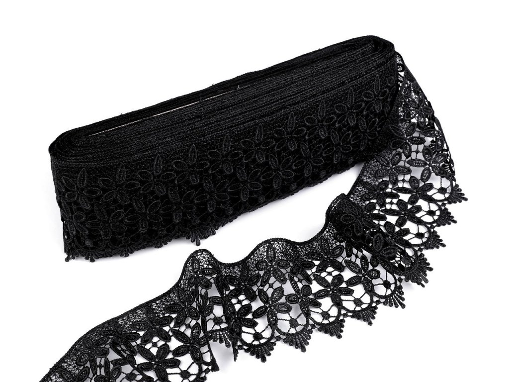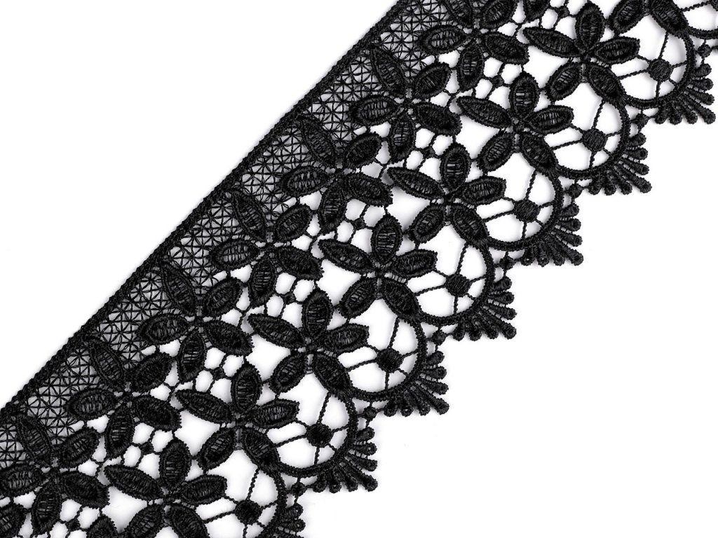 Vzdušnou krajku zdobí květinové motivy. Vyniká precizním zpracováním. Je vhodná k našití na šaty, halenky, saka apod.- Šíře: 85 mm