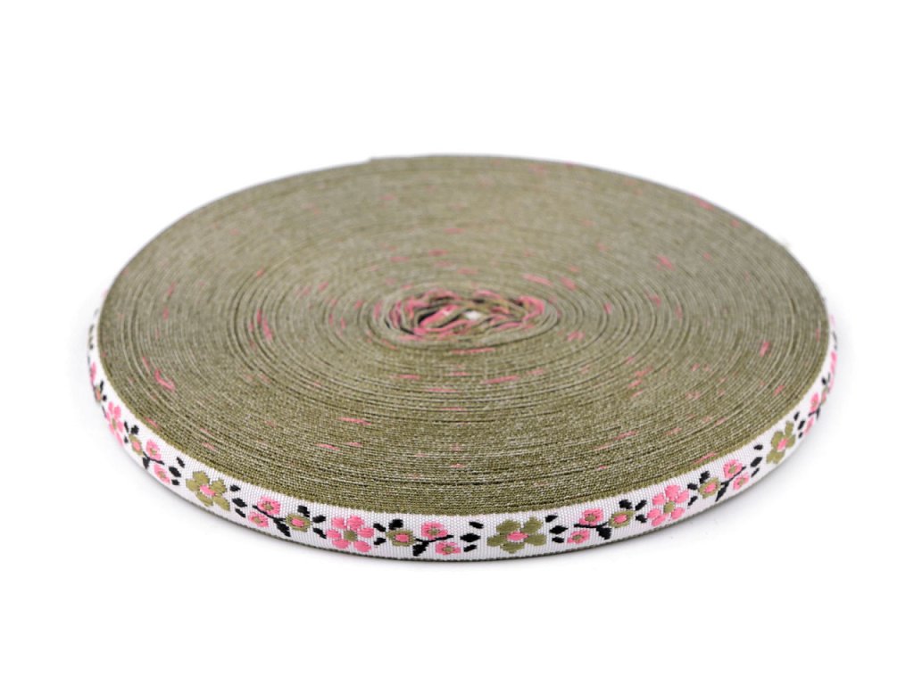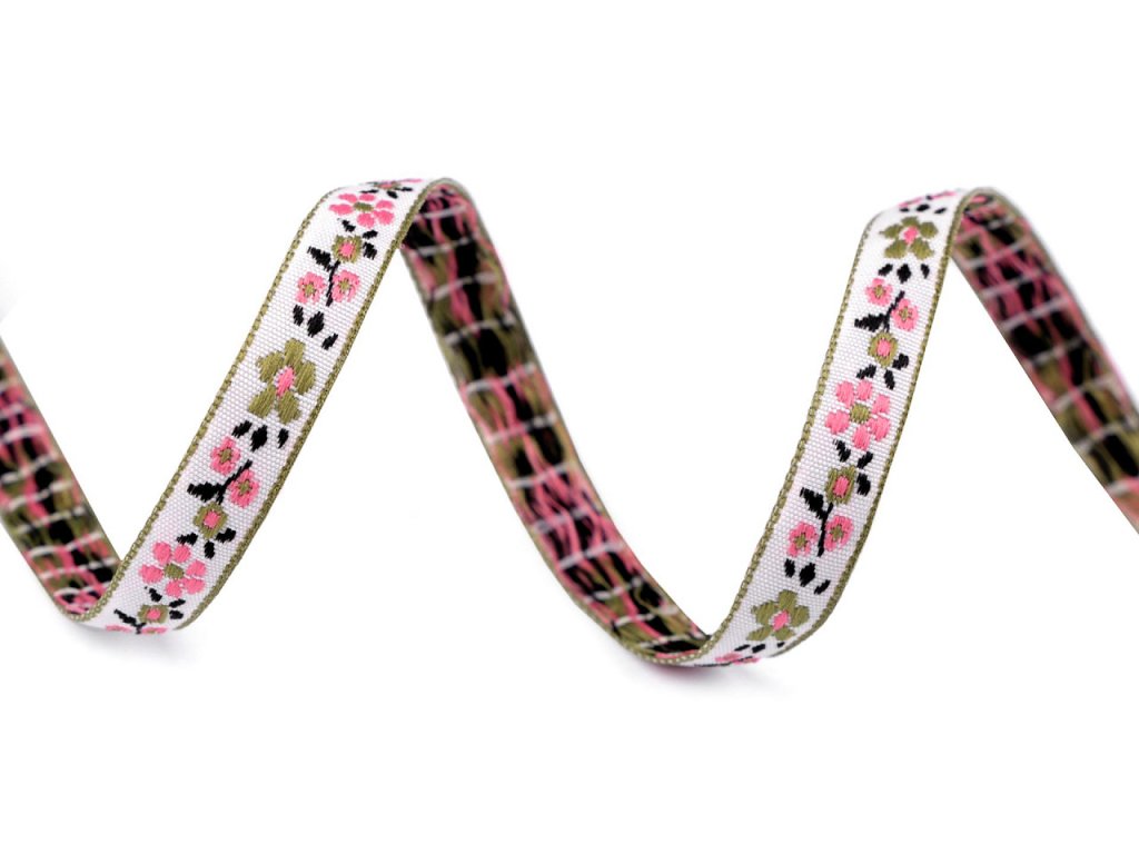 Květovaná vzorovka ozdobí halenky, sukně, šaty, kalhoty i mikiny. Vynikne také na polštářích, ubrusech a prostírání.- Šíře: 9 mm