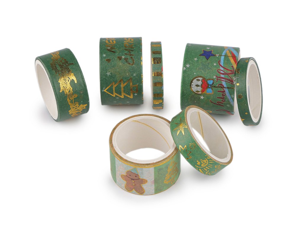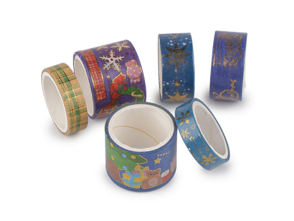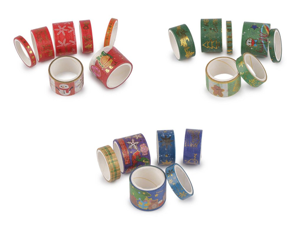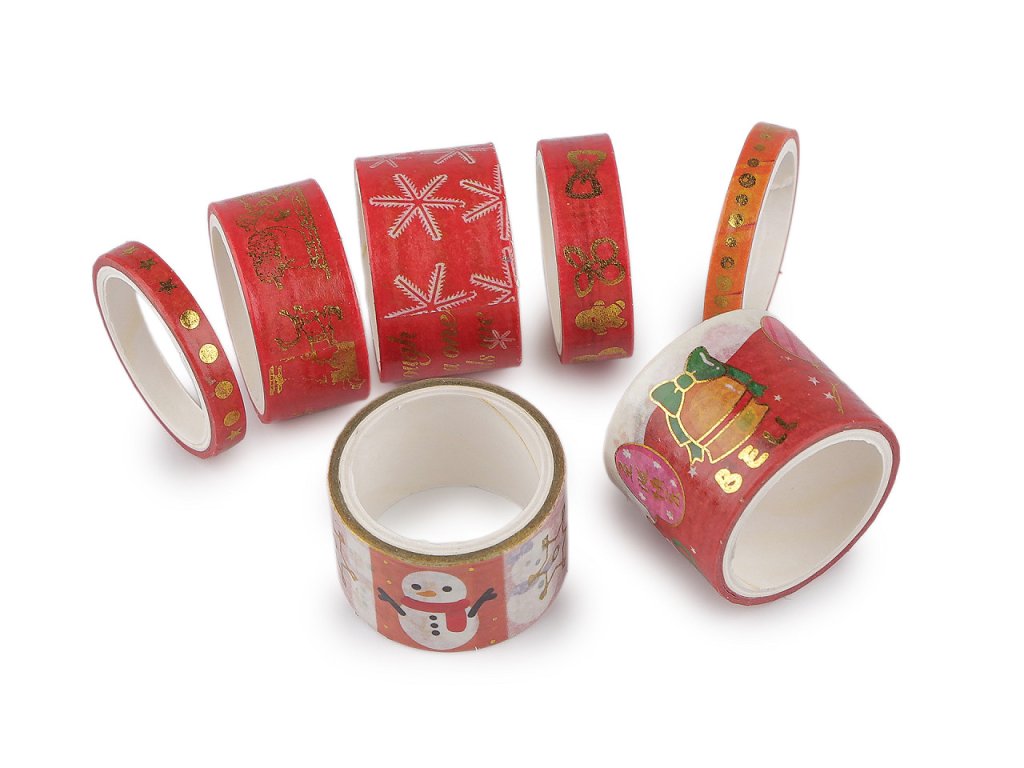 Sada washi vánočních lepicích pásek přinese sváteční kouzlo do každého detailu vaší vánoční výzdoby. Je ozdobená lesklými metalickými detaily, využijete ji na všech hladkých materiálech, jako je dřevo, plast, papír, sklo, atd. Můžete s ní ozdobit dárky a krabičky či je nalepit na přáníčka, alba, fotorámečky, do diáře apod. Výhodou pásky je, že je z papíru a můžete ji lehce utrhnout. Díky samolepicí vrstvě je velmi snadno použitelná a nezanechává stopy po odstranění. Sada obsahuje různé šířky pásek, v sadě je 6 - 7 ks. Každý kotouček obsahuje cca 1,8 m pásky. Mix všech barev je zabalený v papírové krabičce, bude i krásným dárkem. Krabička má rozměry 11 x 11 x 3,5 cm.- Šířka: č. 1 a 2: 5; 10; 15; 20; 25 mm