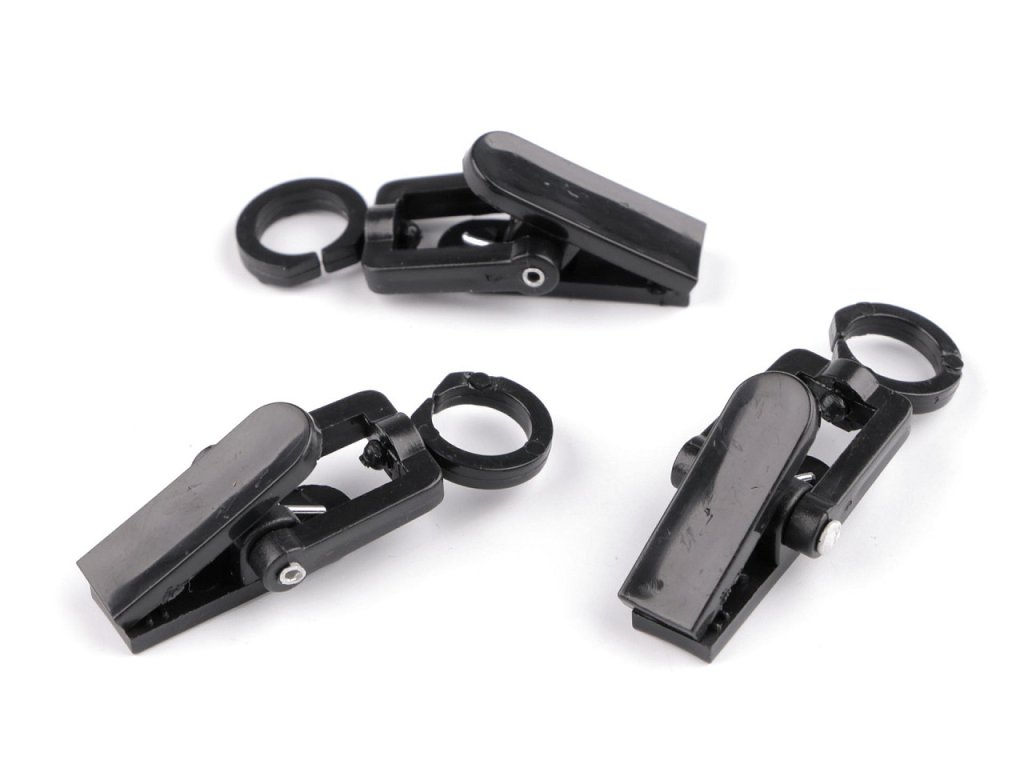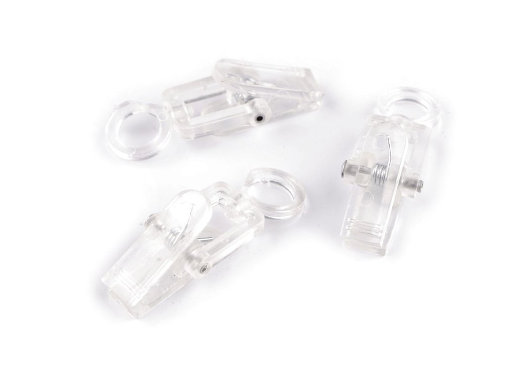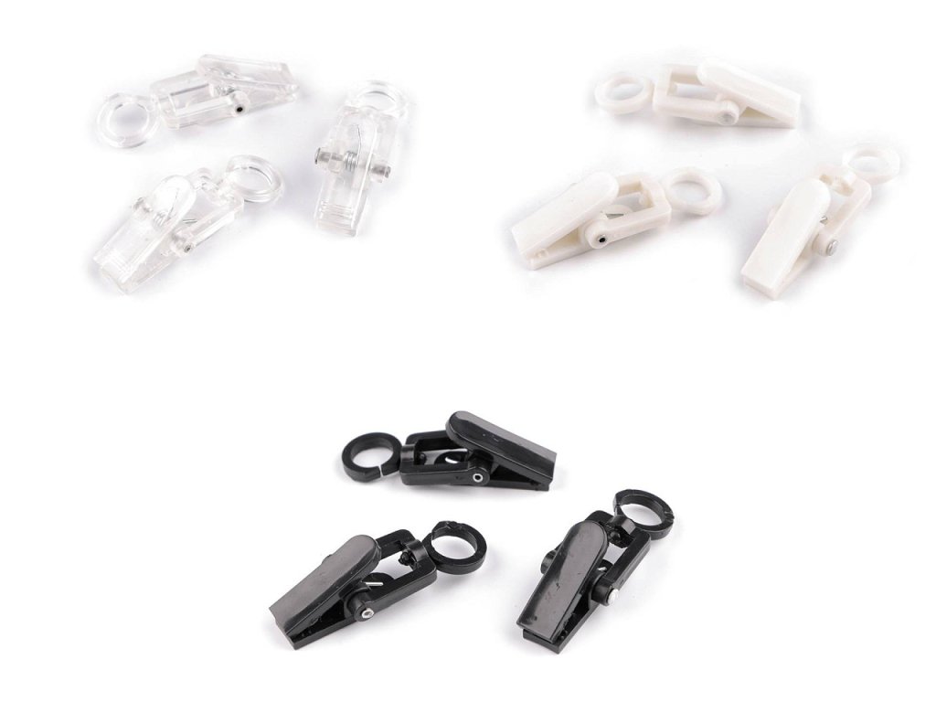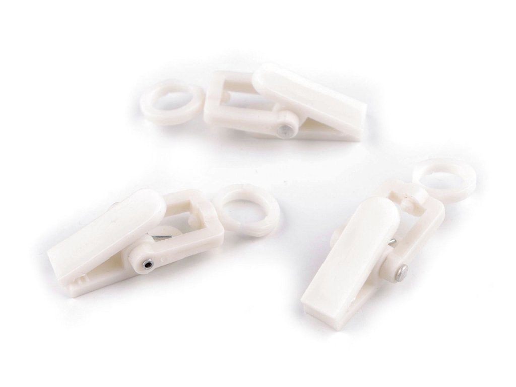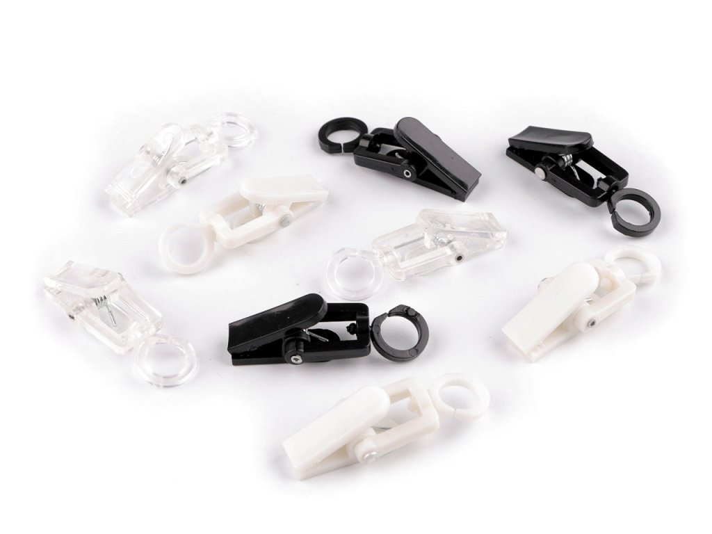 Žabky k uchycení záclon mají na koncích zoubky, díky kterým dobře drží. Jsou z plastu, takže jsou lehké. Očka na žabkách jsou otočná.- Rozměry: 14 x 46 mm