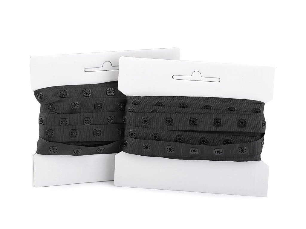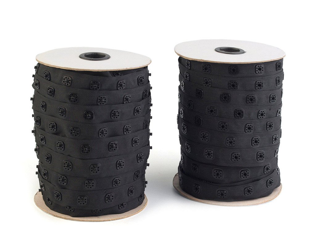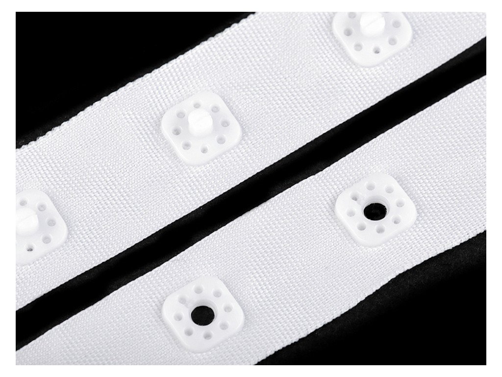 Zapínání na body je v textilní galanterii užitečným pomocníkem. Na kvalitním popruhu jsou připevněné plastové druky. Tento typ patentek je vhodný pro skrytá zapínání na oděvech. Balení obsahuje dvě cívky, obsahující kus a protikus. Rozteč mezi druky je 2,4 cm, vzdálenost mezi druky je 1,6 cm, rozměry druku jsou 8,5 x 8,5 mm. Bílé zapínání má šíři 18 mm.- Šíře: 17 mm
