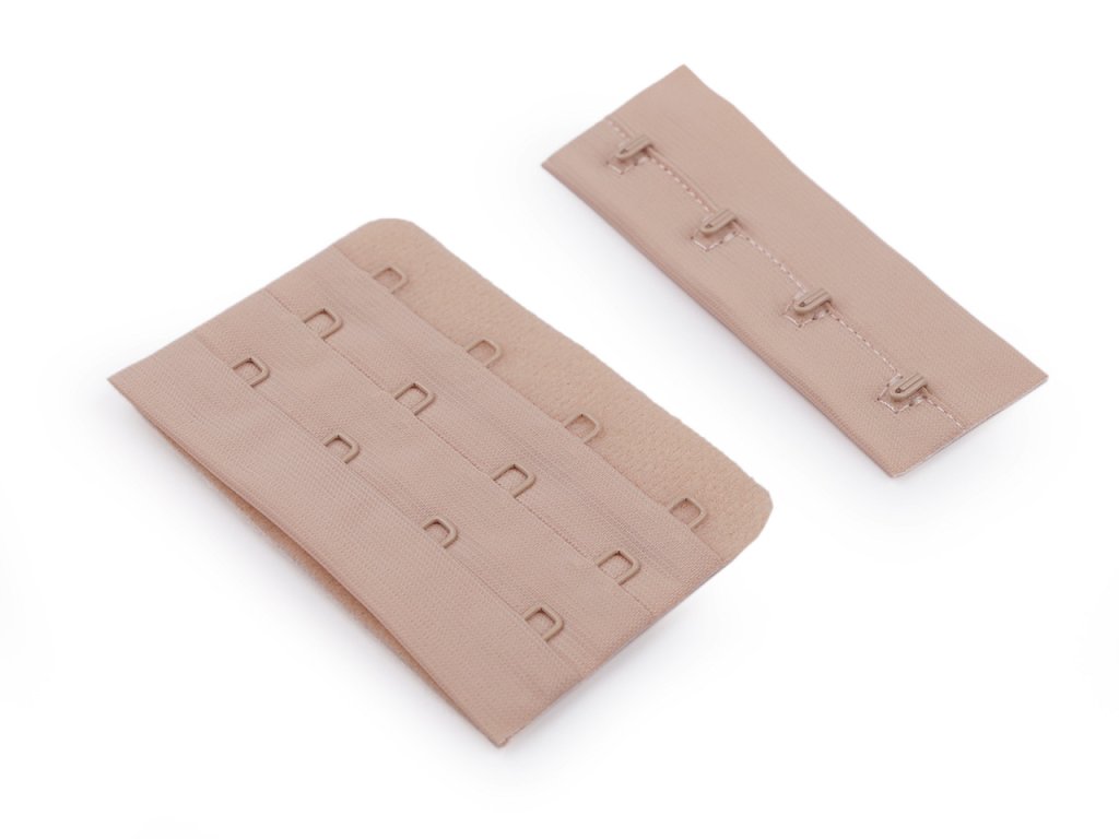 Čtyřřadé zapínání využijete na výrobu podprsenek i na body. Díky své šíři je vhodnější na podprsenky větších rozměrů.