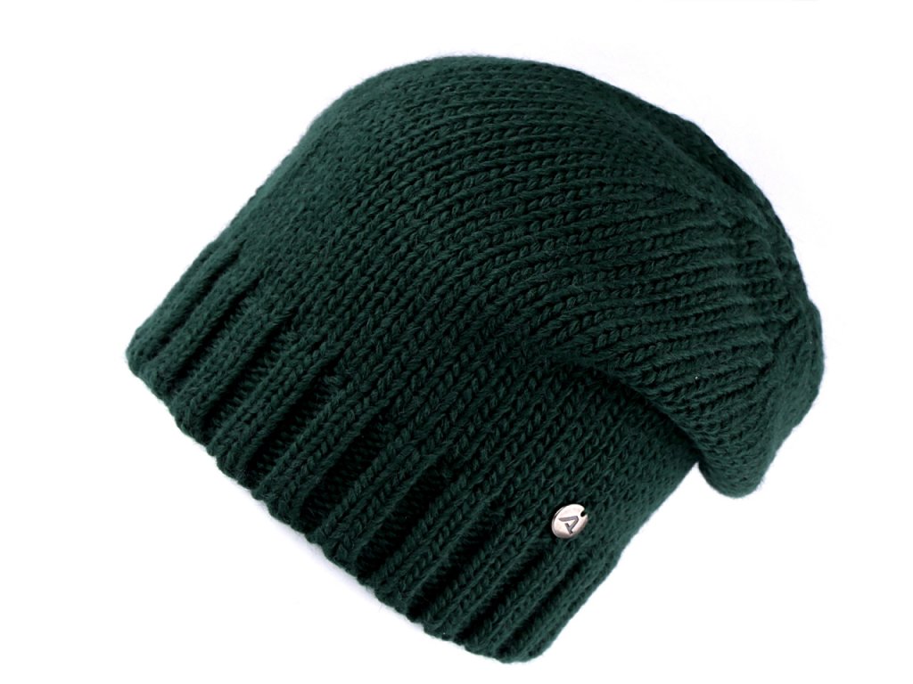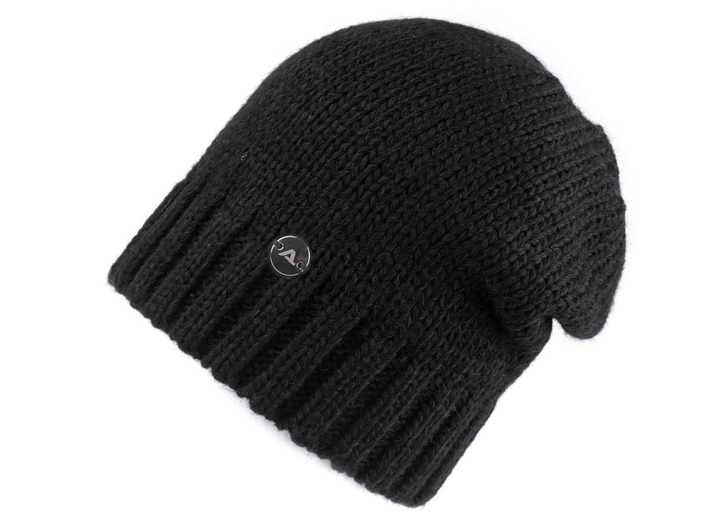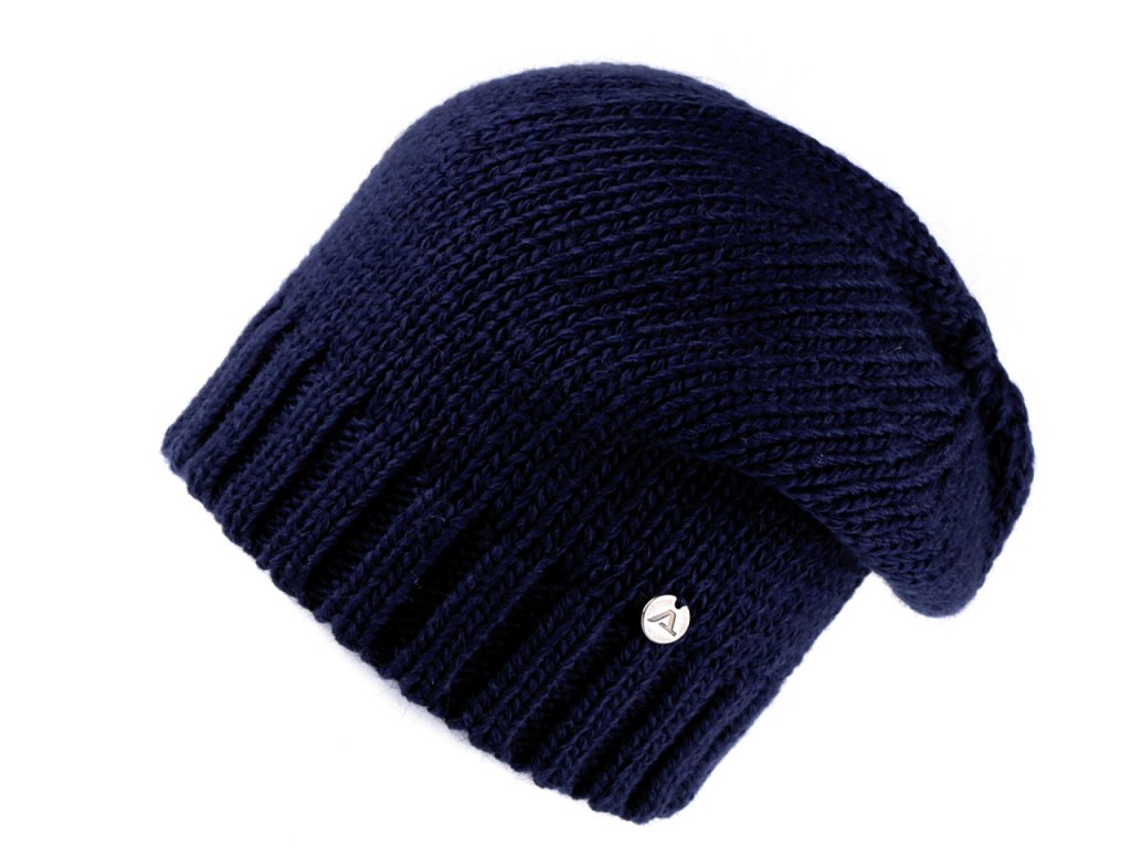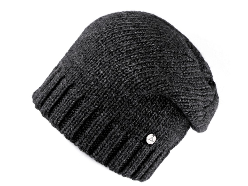 Pletená čepice se svěšeným koncem patří ke stylovým ležérním kouskům. Hodí se na běžné každodenní nošení a sportovní aktivity. Je určená pro ženy i muže - unisex. Má pružný lem, díky kterému dobře drží. Na boku je ozdobená kovovým štítkem. Volně položený obvod lemu je 40 cm, natažený až 64 cm. Výška čepice je 28 cm.- Výška: 28 cm